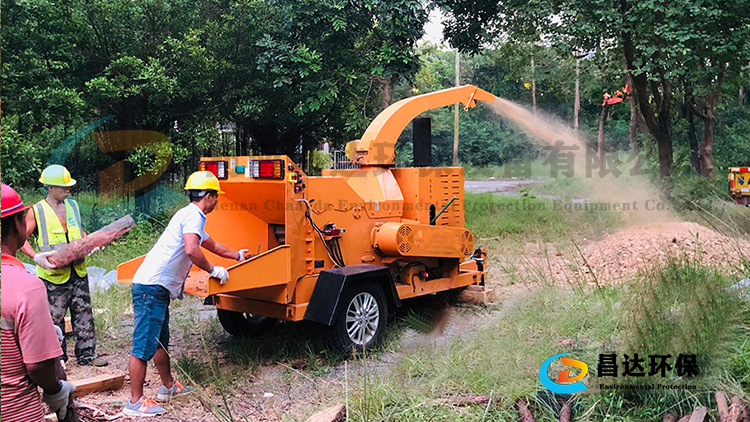 廣州客戶園林綠化單位使用現(xiàn)場,樹枝粉碎機廠家!